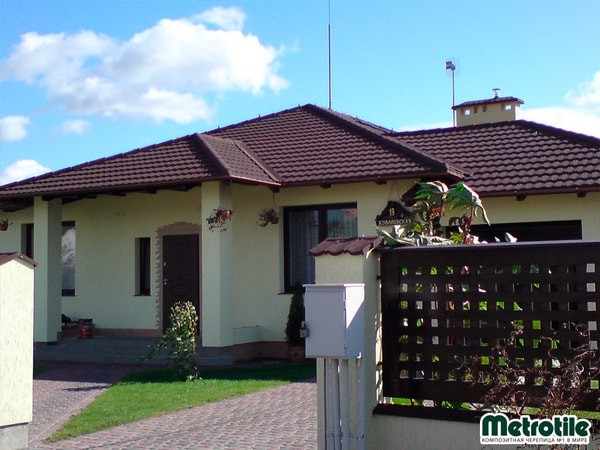 Черепиця MetroBond – це восьмипанельний кам’яний покритий захисним шаром профіль, виготовлений із високоякісної цинк-алюмінієвої сталі та доступний у великому виборі кольорів для підвищення зовнішнього кольорового рішення будь-якого екстер’єру.